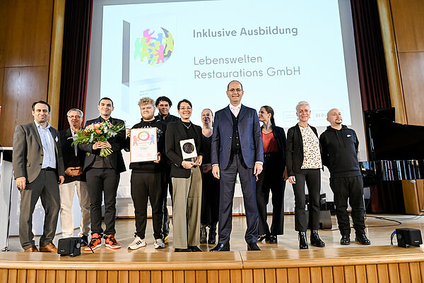 Der Sieger der Kategorie „Inklusive Ausbildung“ ist die Lebenswelten Restaurations GmbH. Das Unternehmen ist im Sinne des Schwerbehindertenrechts ein Inklusionsbetrieb. So erfüllt Lebenswelten den sozialen Auftrag, mindestens 30 Prozent schwerbehinderte Menschen zu beschäftigen. Von aktuell 74 Beschäftigten der Firma haben 30 eine Beeinträchtigung. Der Inklusionsbetrieb Lebenswelten hat sich von Anfang an der beruflichen Ausbildung von Menschen mit Handicap verpflichtet. Im Verlauf der 37 Jahre bildete Lebenswelten 130 junge Menschen in gastronomischen Berufen aus.