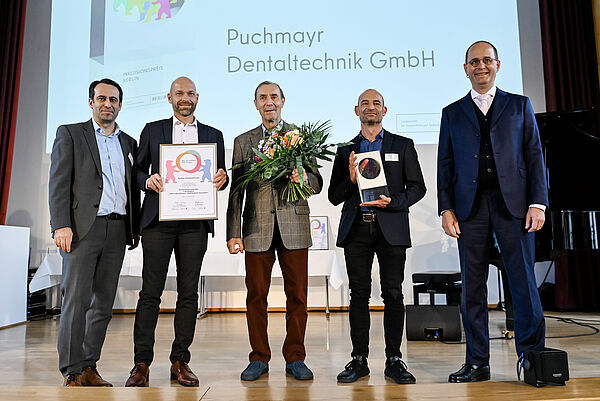 Das Unternehmen Puchmayr Dentaltechnik GmbH siegte in der Kategorie „Inklusive Beschäftigung – Mittelständische Unternehmen“. Für das Dentallabors gehören wirtschaftliche und soziale Verantwortung zusammen: 26 Beschäftigte ohne Behinderung und vier gehörlose Mitarbeiterinnen und Mitarbeiter fertigen diverse zahntechnische Produkte. Somit liegt die Beschäftigungsquote des Labors in Höhe von 13,3% weit über den gesetzlichen Vorgaben und ist beispielhaft für andere Unternehmen.