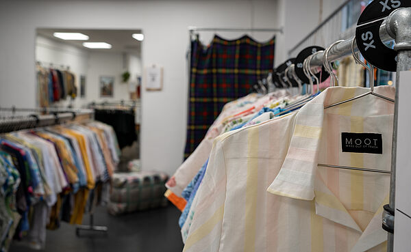 Berlin, 29. Juli 2024 – Was geschieht eigentlich mit entsorgter Kleidung, aussortierten Kissen- und Sofabezügen oder alten Wolldecken? Das Berliner Unternehmen MOOT – Made Out ofTrash hat darauf eine nachhaltige Antwort gefunden: Die Gründer Nils Neubauer und Michael Pfeifer sowie ihr Team fertigen aus geretteten Textilien 100 % nachhaltige Kleidungsstücke. Die MOOT-Unikate verkaufen sie mittlerweile sowohl online als auch in ihrem Concept Store im Berliner Ostbahnhof und in ihrem im Mai 2023 eröffneten Flagship Store in Prenzlauer Berg. Für die Umsetzung ihrer spannenden Vision arbeiten sie eng mit der Berliner Stadtmission zusammen, beauftragen für die Produktion von Bekleidung, Accessoires und Taschen für Erwachsene und Kinder Berliner Kleinunternehmen sowie die soziale Einrichtung USE und unterstützen somit tatkräftig die Berliner Wirtschaft.
