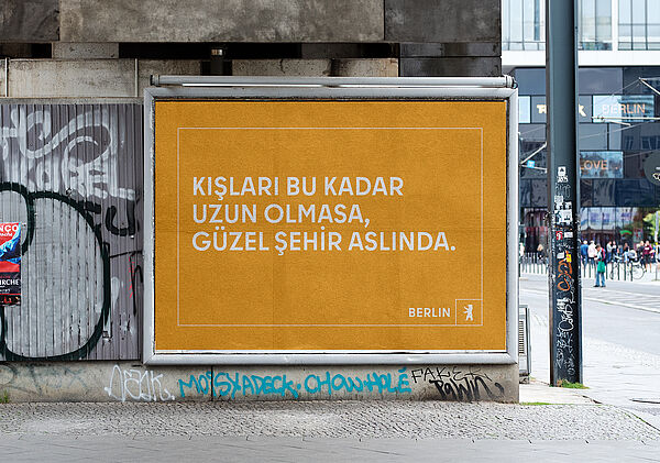 Some of the motifs in English, Turkish and Arabic address the city’s numerous foreign-language communities. Additional motifs in Polish, Russian and Ukrainian are also distributed via the @wir.berlin-Kanal channel. That is what Berlin is: diverse, versatile, colourful. Characteristics that, however, are still (too) often overshadowed by outdated clichés in our own country.“Berlin is a strong brand. But a brand also needs to be continuously maintained. Berlin has a great deal of appeal internationally, but unfortunately there are still reservations or clichés about Berlin nationally. We therefore want to use the campaign to promote Berlin as a city of freedom, internationality, diversity and solidarity. We are dispelling some clichés, radiating confidence and strengthening cohesion in our city, which is so important in these challenging times”,  confirms Berlin’s governing mayor Kai Wegner. As a result, the campaign is also represented in ten other German cities and is intended to strengthen Berlin’s reputation with its own messages, some of which are also self-deprecating. In Munich, for example, you can read: “This is where the Bavarians take off their lederhosen”, while in Stuttgart it says: “Real Swabians move there.”