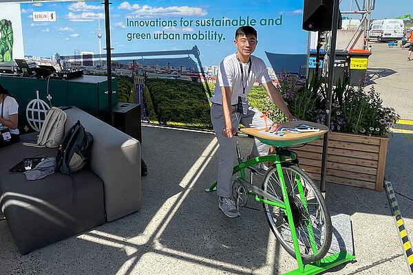 DJ duo Bader & Bernhard will be on hand to provide the right sound at the Berlin stand. From 11 am til 4 pm, the two Berliners Eva Be and Clarice will spin their best tunes with varied DJ sets on both exhibition days. If browsing the plethora of festival offers should cause your phone battery to run low, it can be recharged using the charge bike at the Berlin stand. This is what green, sustainable mobility looks like in Berlin.
